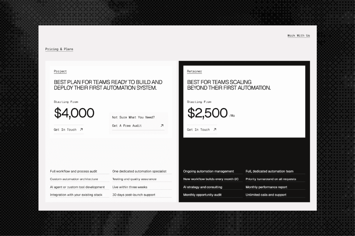 Landing page for an AI automation agency